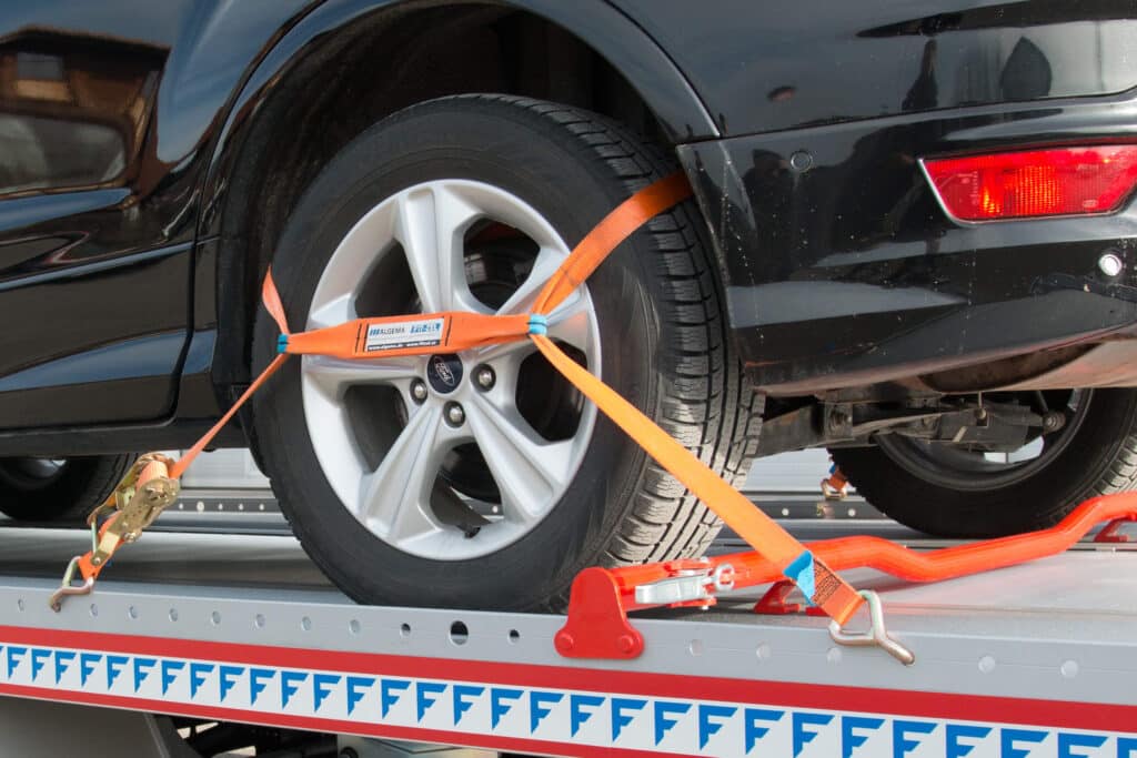 Met slechts twee van deze spanbanden, diagonaal over het voertuig aangebracht (bijvoorbeeld op het linkervoorwiel en het rechterachterwiel), en de toevoeging van twee doorlopende wielbeugels (één voor en één achter het voertuig), behaalt u de volledige goedkeuring voor het veilig transporteren van uw voertuig.