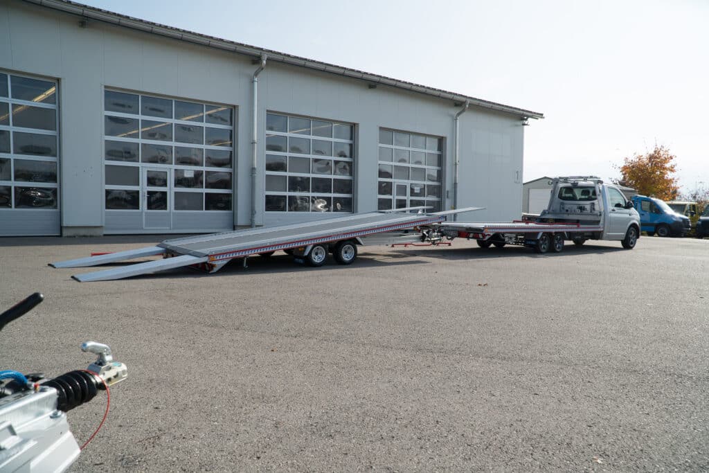 - Dankzij de ingenieuze doorrijd functie kunt u de eerste auto eenvoudig van de aanhanger op de laadbak van uw trekkende voertuig (oprijwagen) rijden.