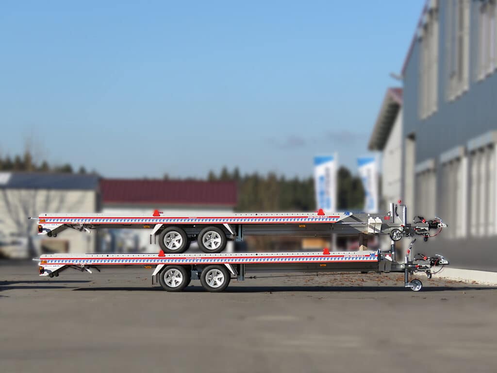 Deze versie van de Euro-Trans is de meest veelzijdige aluminium aanhangwagen voor professioneel voertuigtransport.