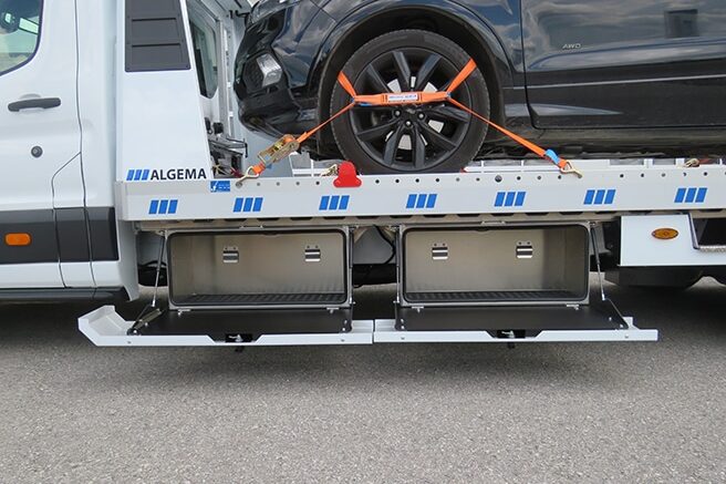De ALGEMA autotransporter met een vast laadplatform, vervaardigd uit een aluminium/staal compound constructie, is een robuuste en economische oplossing voor solide autotransport.