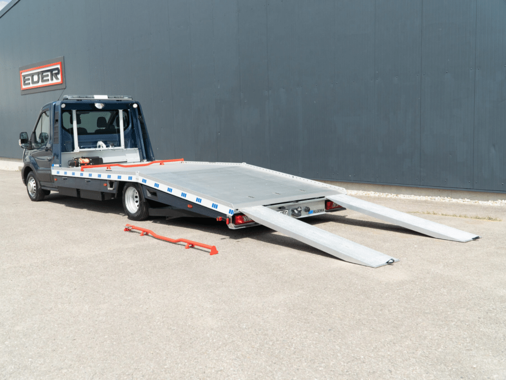 De ALGEMA FESTPLATEAU is de oprijwagen op het Transit 500 chassis voor het vervoer van 1 auto. Degelijk afgewerkt, snel inzetbaar en doordacht gebouwd.