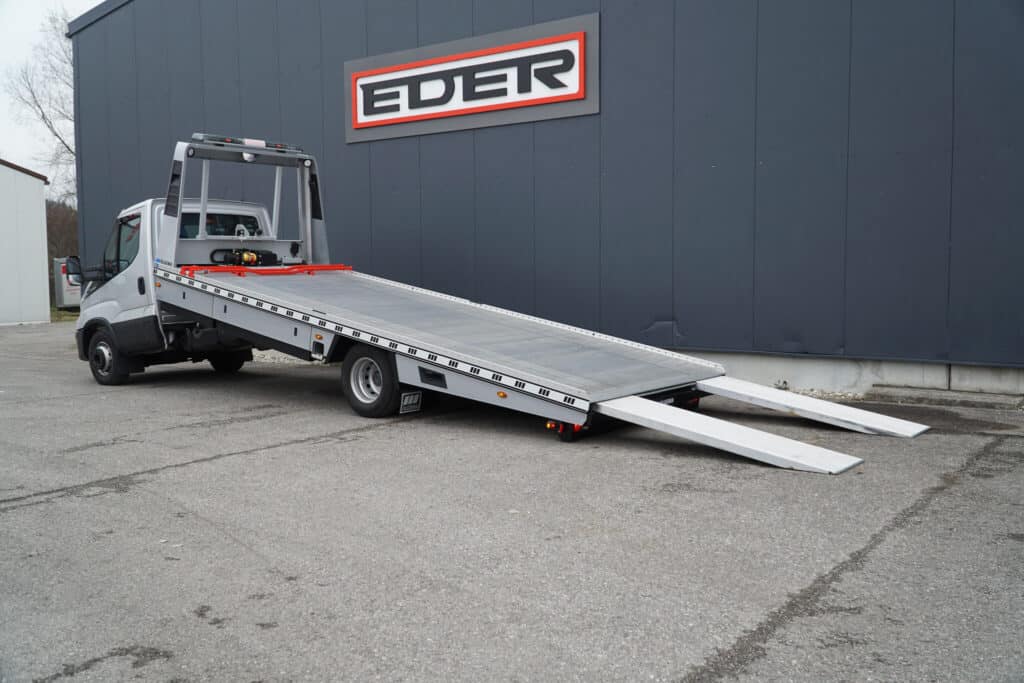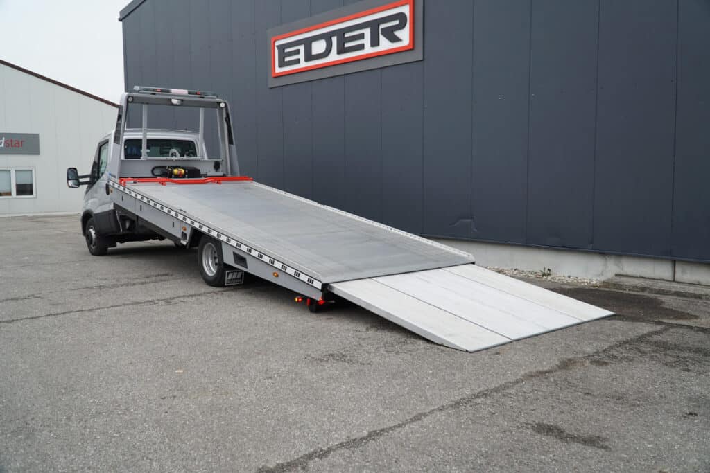 De Blitzlader HD heeft van onze autotransporters de langste en breedste laadvloer: tot 620cm lang voor de enkele cabine en in alle versies 230cm breed.